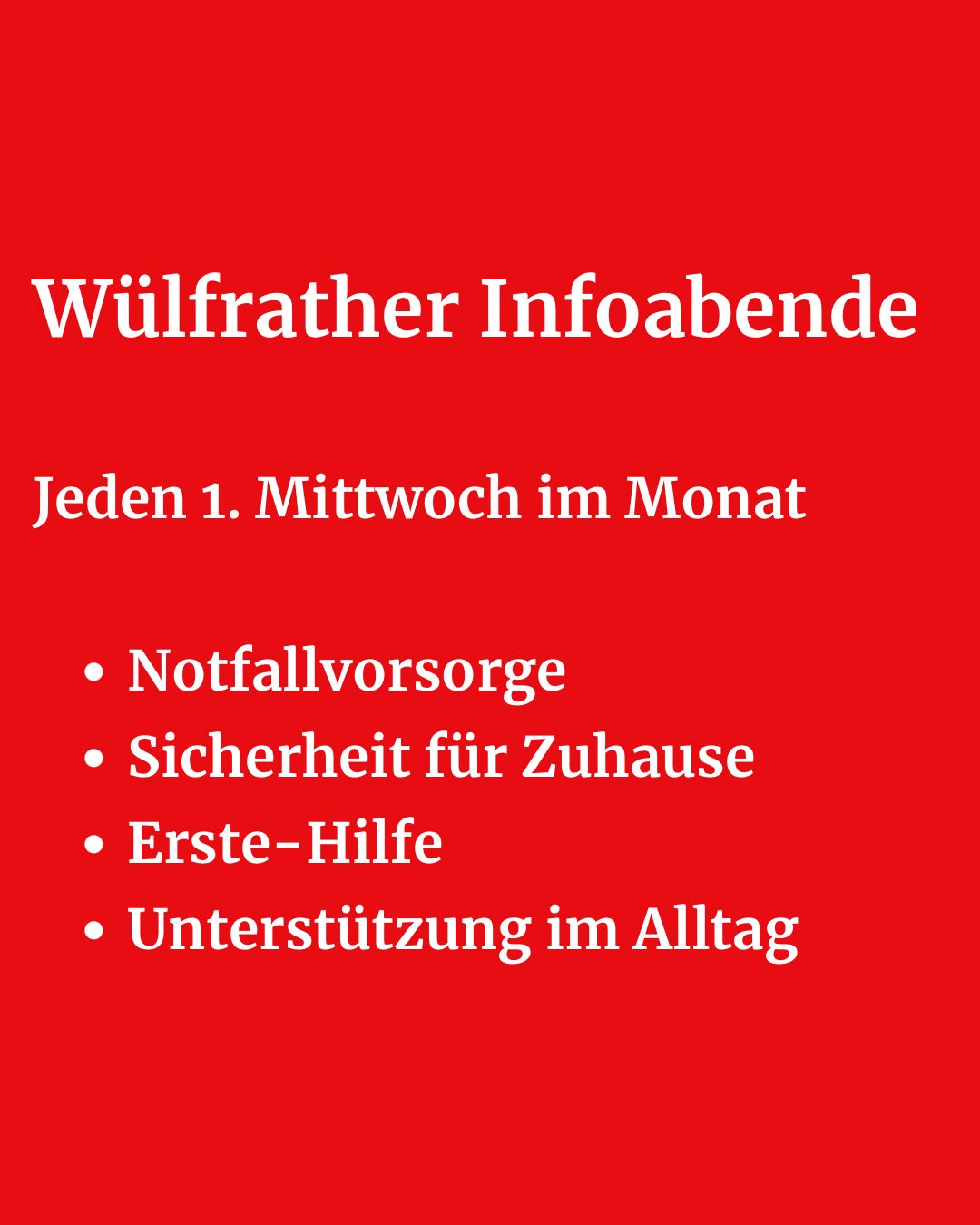 Wenn plötzlich nichts mehr geht – Strom, Wasser, Versorgung oder Kommunikation – spricht man von einem „Blackout“ oder einer schweren Krise. Gute Notfallvorsorge bedeutet, vorbereitet zu sein, ohne in Panik zu verfallen. Hierüber informiert das DRK in Kooperation mit dem AWO-TREFF Wülfrath zukünftig an jedem 1. Mittwoch im Monat. Die Kick-Off-Veranstaltung ist am 01.04.2026 von 19-20 Uhr. Anschließend offener Austausch. Es ist keine Anmeldung erforderlich.